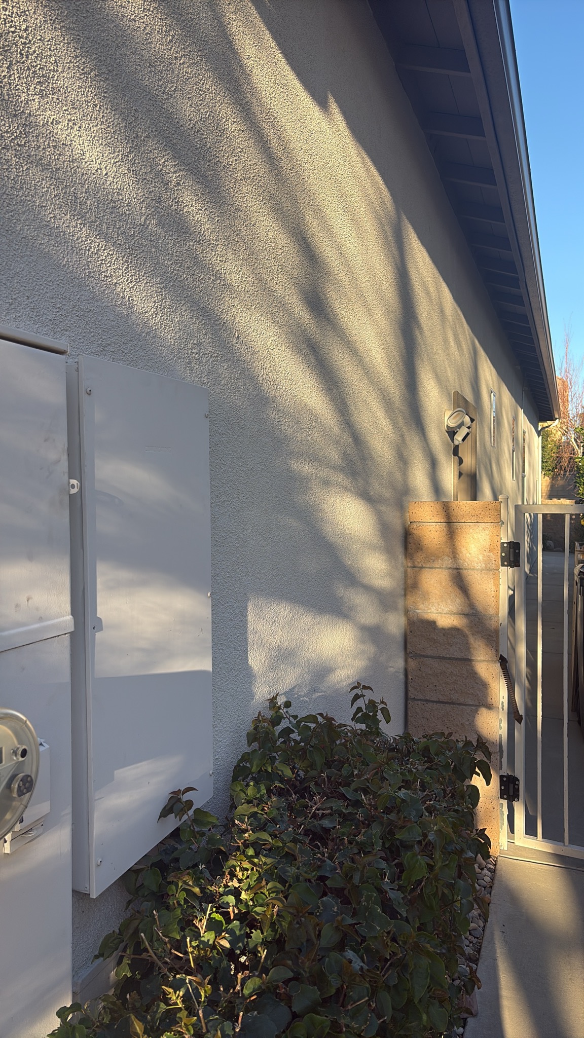 The new panel location is approximately 10 feet from the existing exterior panel, positioned closer to the main house.